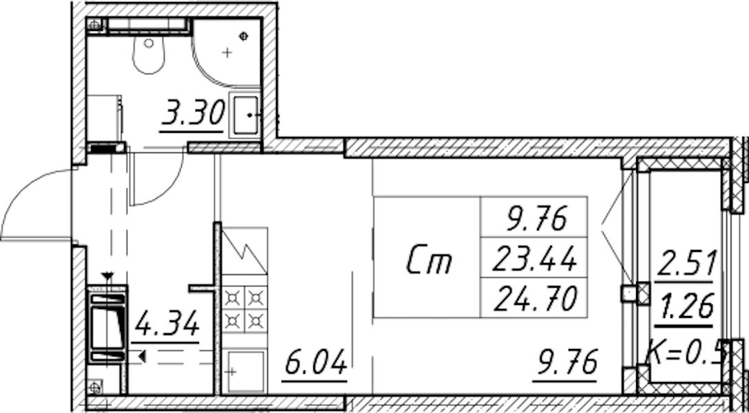 Квартира-студия на 15-ом этаже 24,7 кв.м