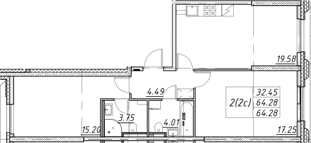 - Площадь64,28 м2