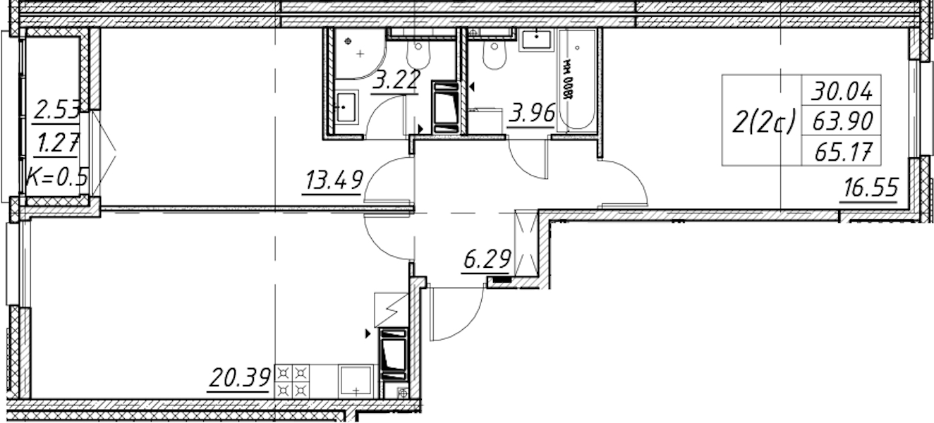 • Площадь65,17 м2