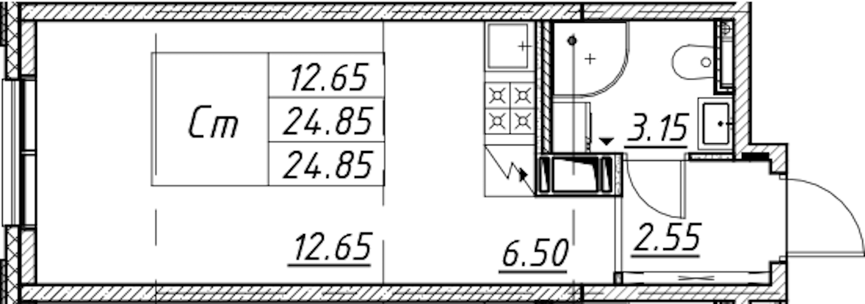 - Площадь24,85 м2