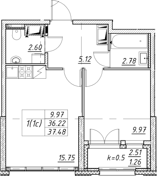 • Площадь37,48 м2