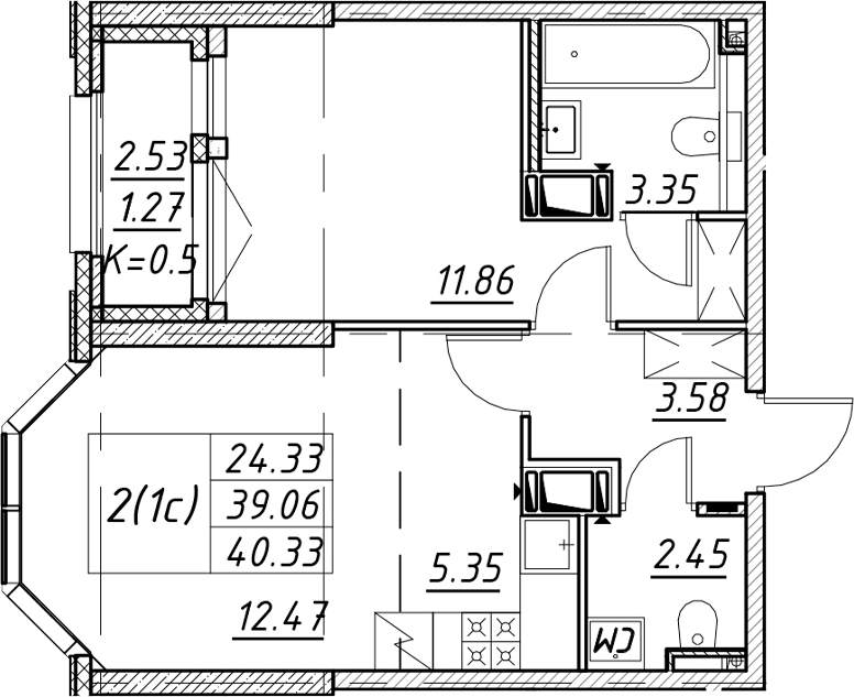 • Площадь40,33 м2