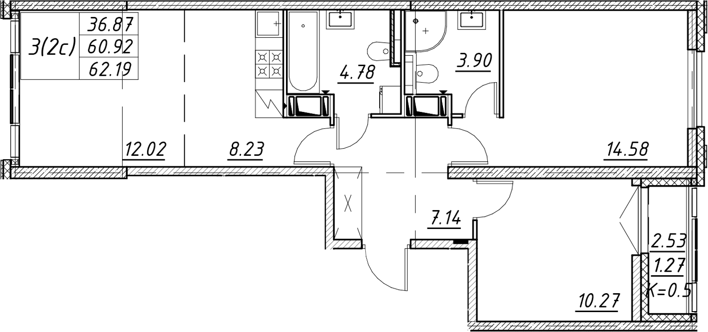 • Площадь62,19 м2