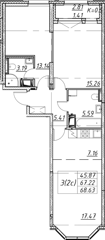 • Площадь68,63 м2