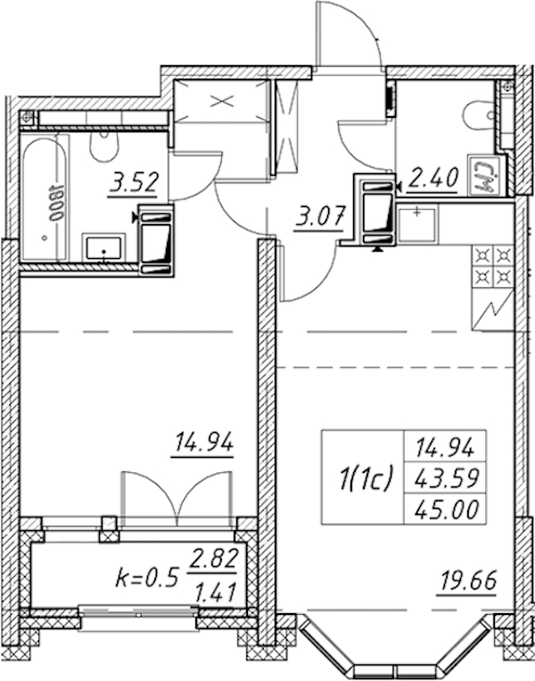 • Площадь45 м2