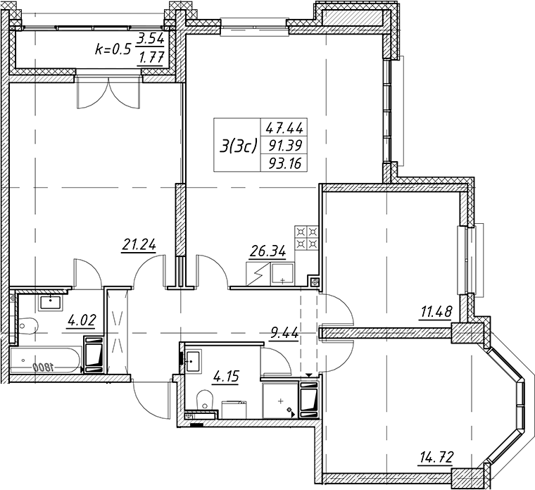 - Площадь93,16 м2