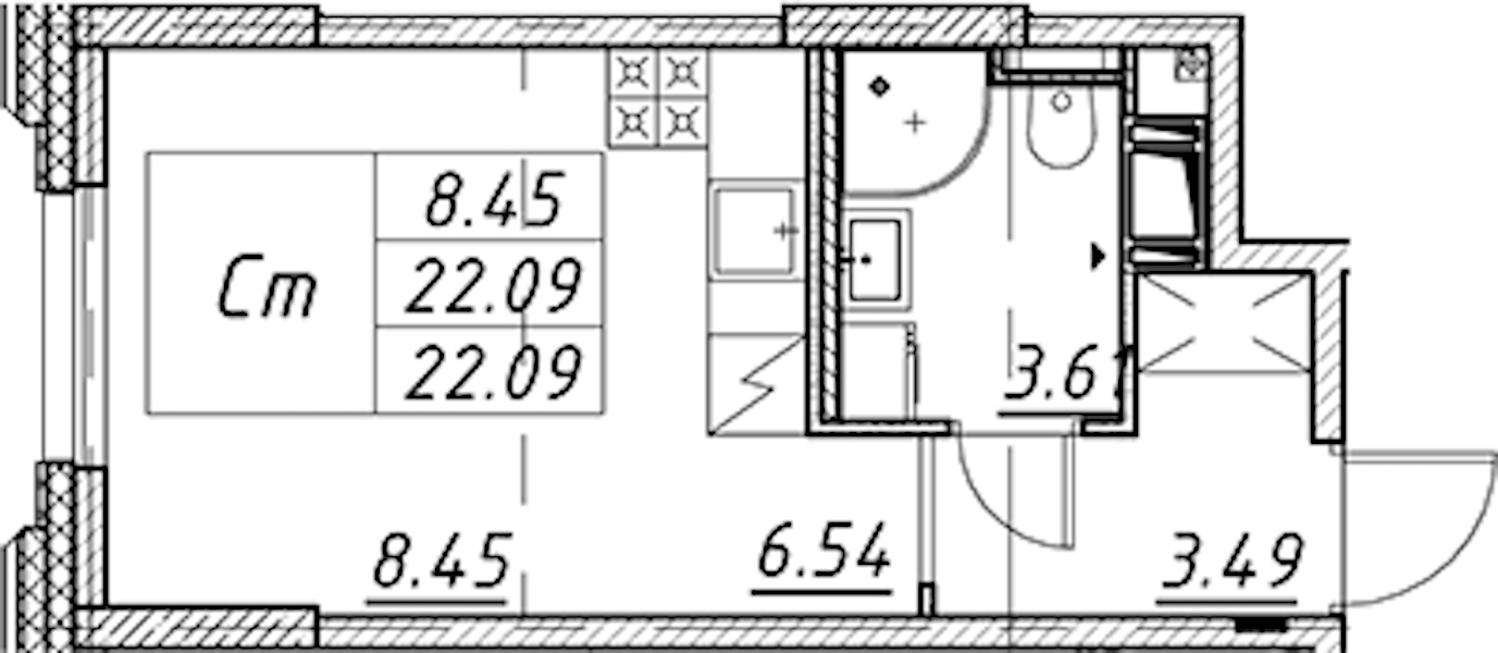 - Площадь22,09 м2
