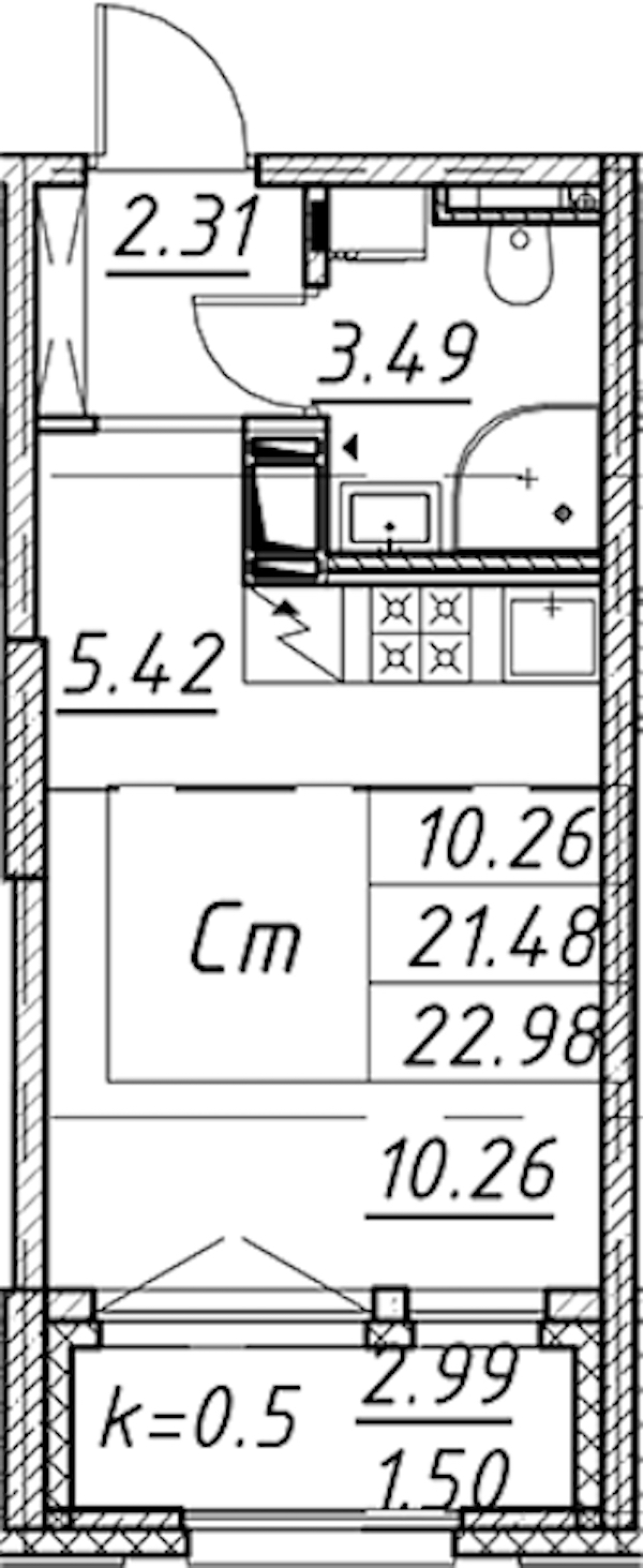 - Площадь22,98 м2