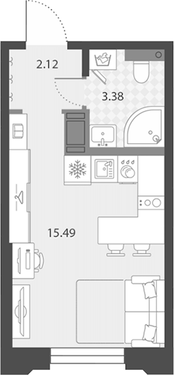 Квартира-студия на 5-ом этаже 20,99 кв.м