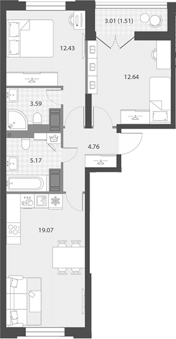• Площадь59,17 м2