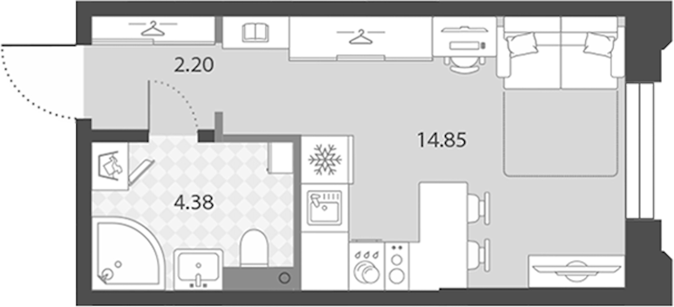 Квартира-студия на 2-ом этаже 21,43 кв.м