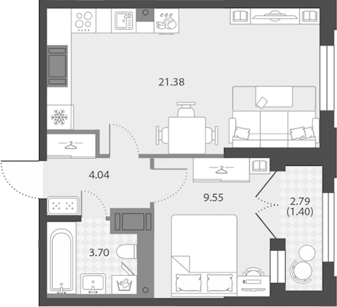- Площадь40,07 м2