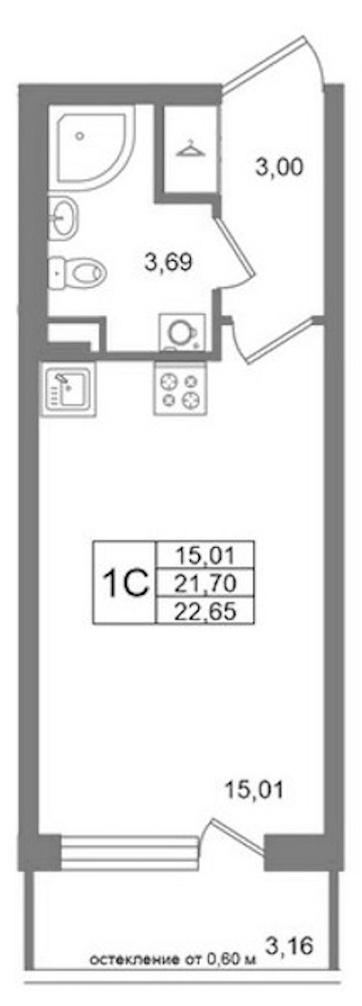 Квартира-студия на 1-ом этаже 21,7 кв.м