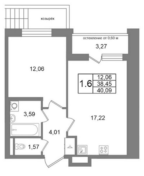 • Площадь38,45 м2
