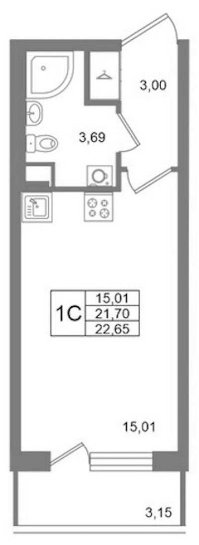 • Площадь21,7 м2