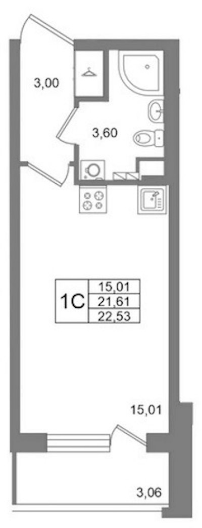 Квартира-студия на 2-ом этаже 21,61 кв.м