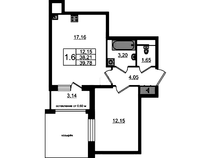 Однокомнатная квартира на 2-ом этаже 38,21 кв.м