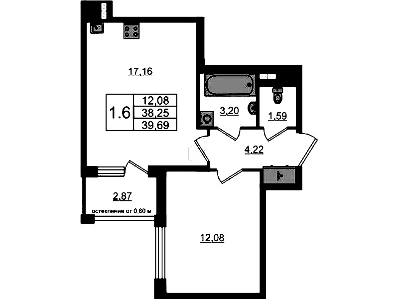 • Площадь38,25 м2