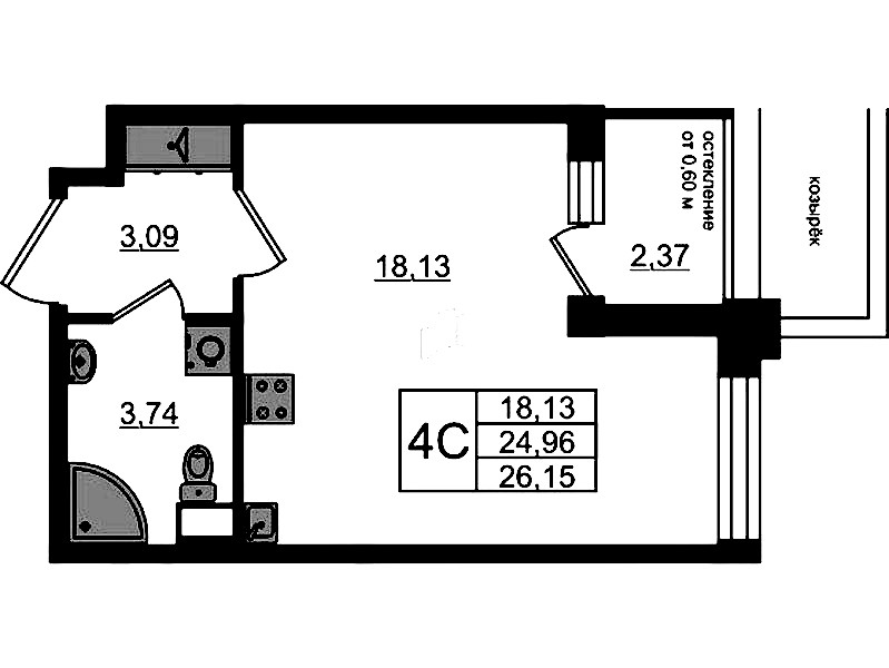 Квартира-студия на 1-ом этаже 24,96 кв.м