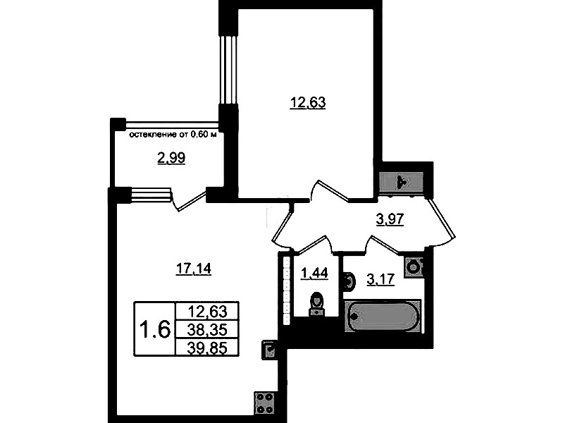 Однокомнатная квартира на 4-ом этаже 38,35 кв.м