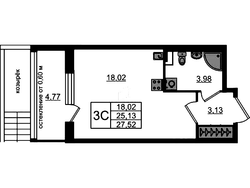 • Площадь25,13 м2