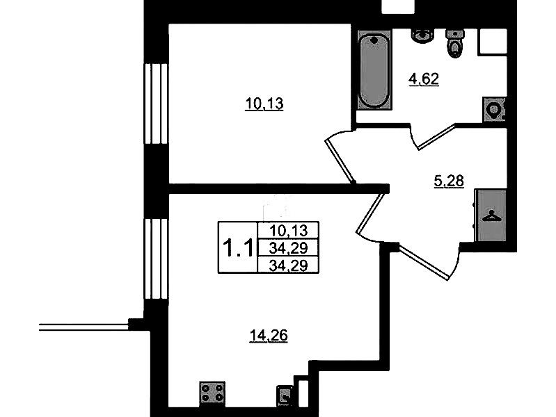 - Площадь34,29 м2