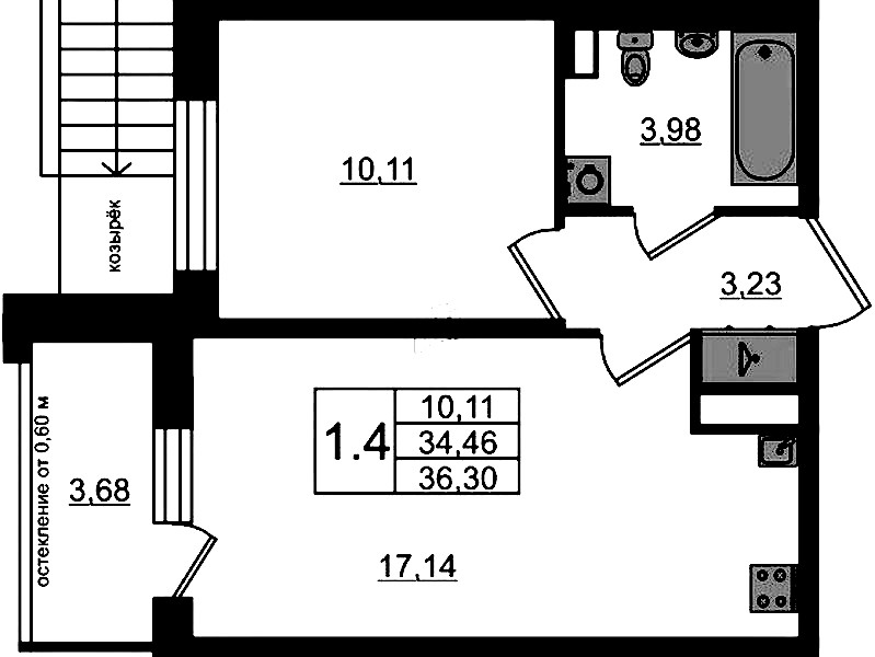 - Площадь34,46 м2