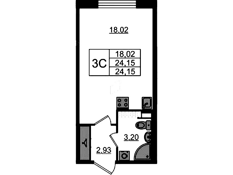 Квартира-студия на 4-ом этаже 23,9 кв.м