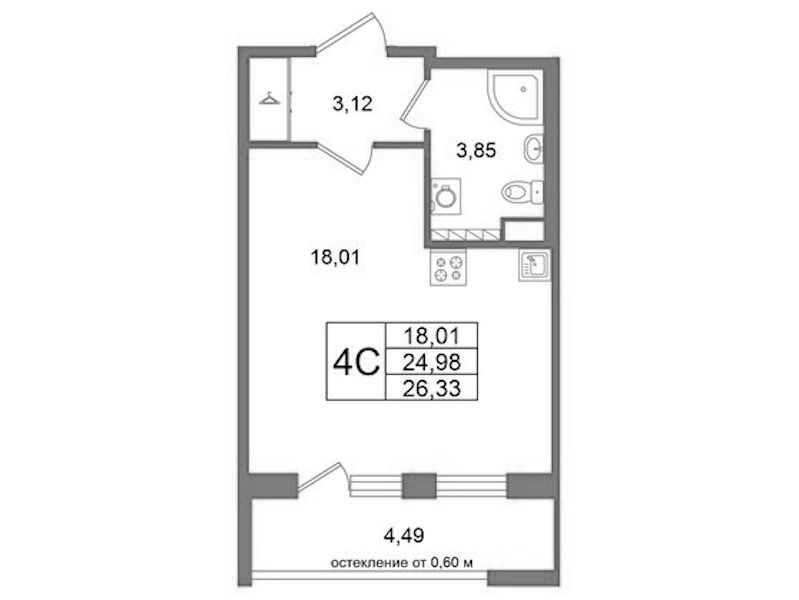 Квартира-студия на 3-ем этаже 24,98 кв.м