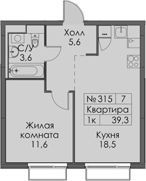 - Площадь39,3 м2