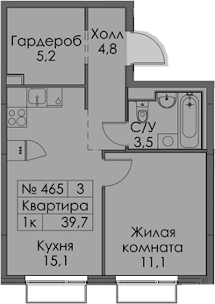- Площадь39,7 м2