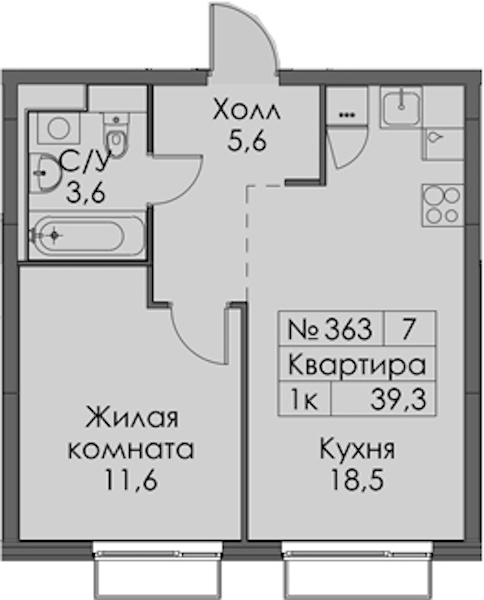 • Площадь39,3 м2