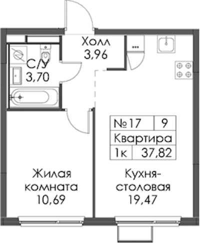 - Площадь37,82 м2