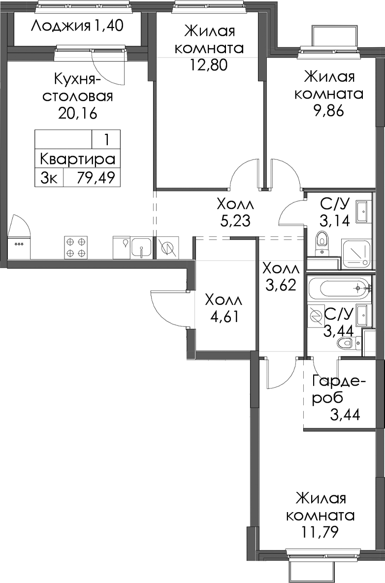 • Площадь79,49 м2