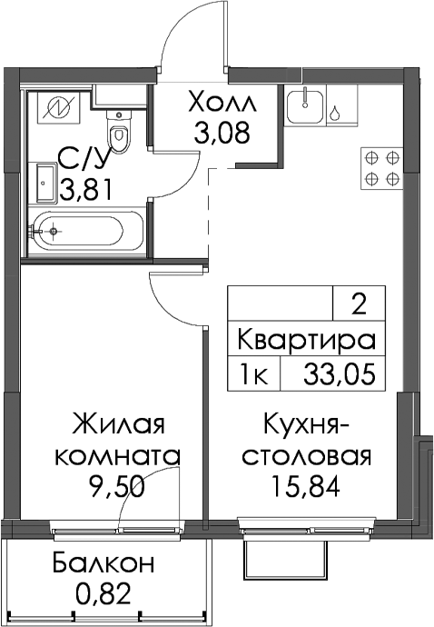 - Площадь33,05 м2