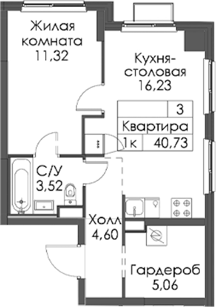 - Площадь40,73 м2