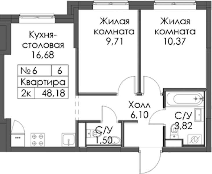 • Площадь48,18 м2