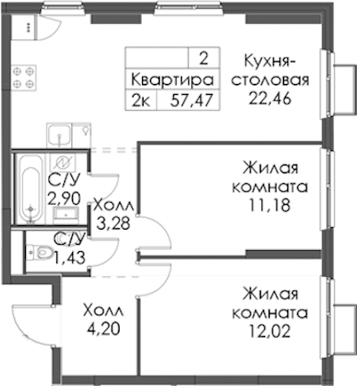 - Площадь57,47 м2