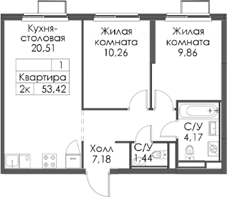 - Площадь53,42 м2
