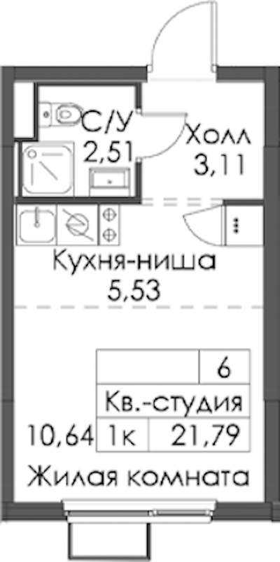 Квартира-студия на 7-ом этаже 21,79 кв.м
