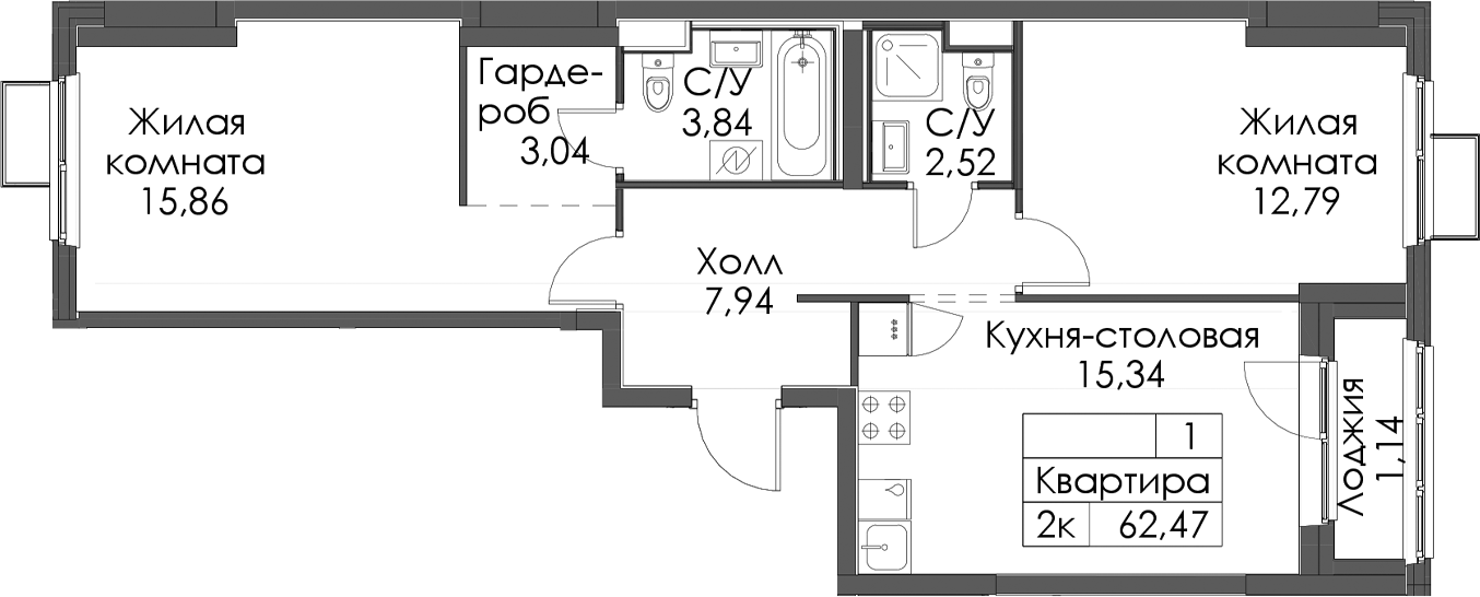 - Площадь62,47 м2