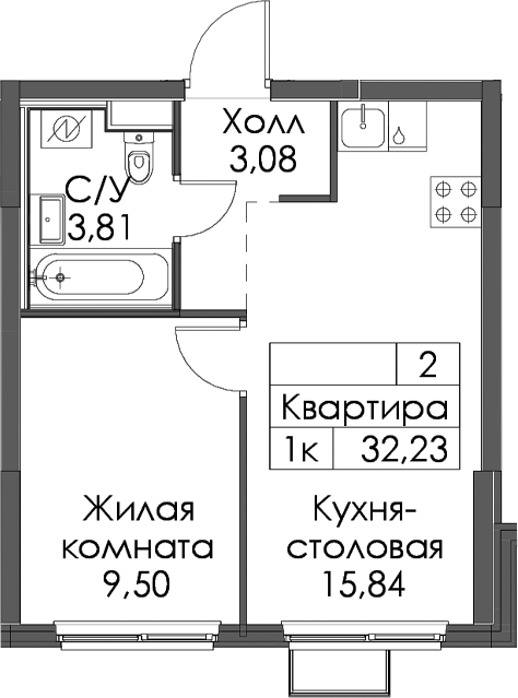 - Площадь32,23 м2